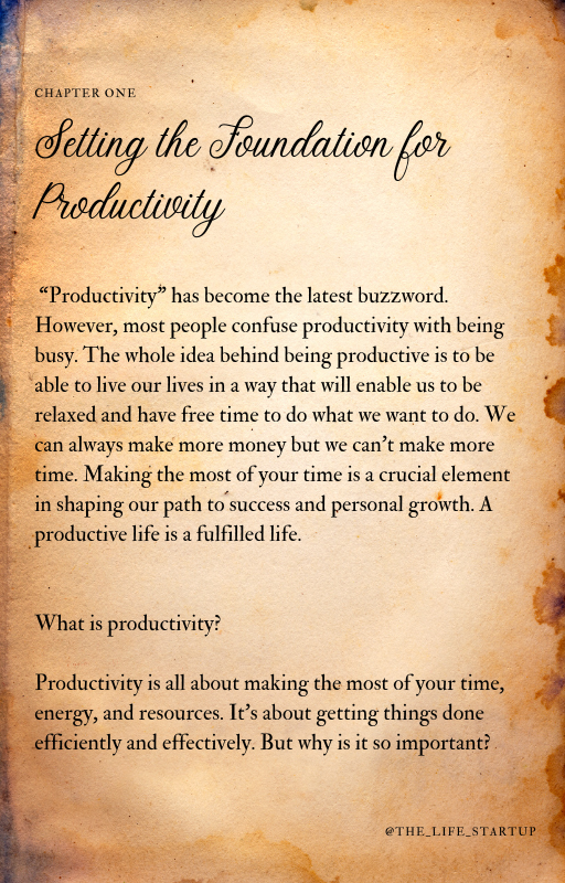 Subscribe to The Life Startup YouTube Channel"The Productivity Playbook" is a short roadmap to achieving peak efficiency and personal fulfillment. This guide offers practical strategies, actionable tips to help you master time management, set and prioritize meaningful goals, and maintain a balanced work-life integration. Dive into a world of enhanced productivity and unlock your true potential with this empowering guide.